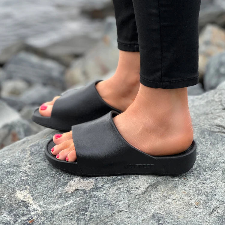 Lightfeet Single Strap Slides with Arch Support have been designed by Sports Podiatrist, Dan Thomas. Dan's extensive knowledge of foot mechanics led to the creation of this therapeutic, soft, and fashionable line of arch support slides.